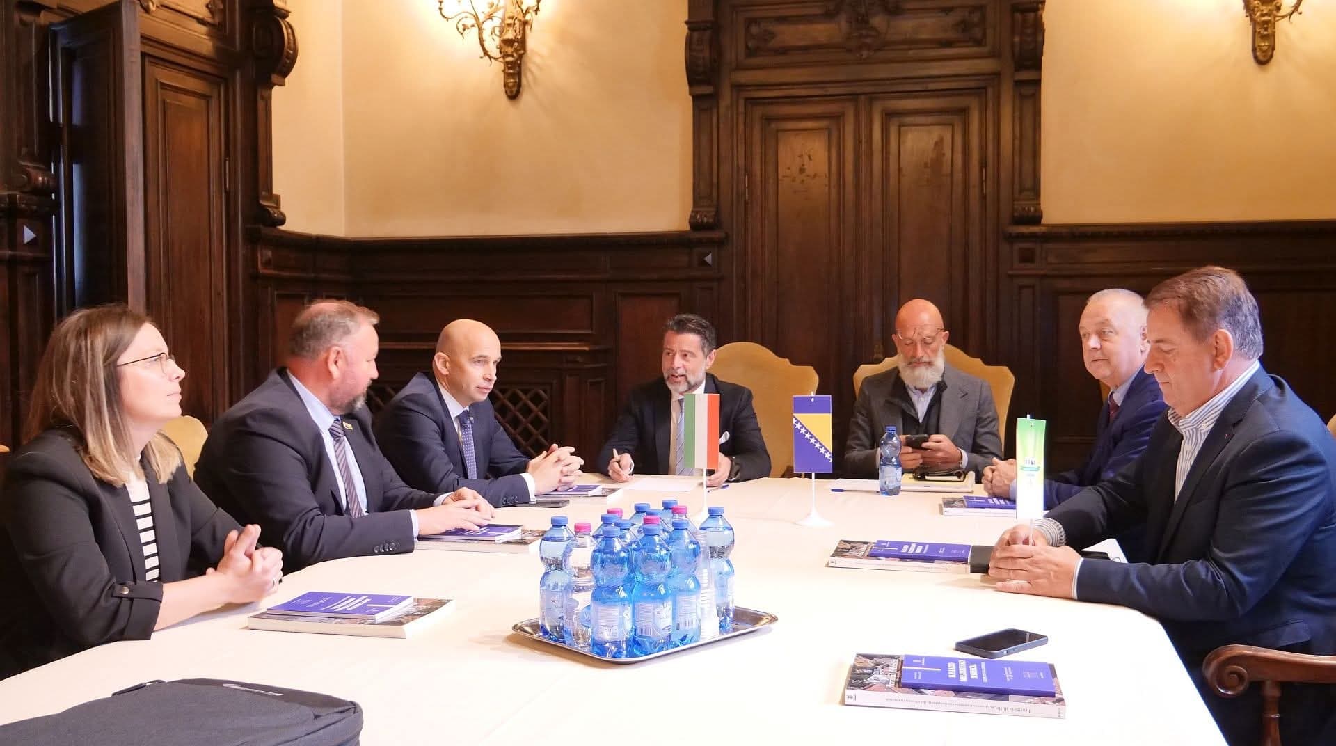 Istaknuto je da je Italija zemlja s kojom ZDK ostvaruje značajnu robnu razmjenu – izvoz Italije u ZDK prošle godine iznosio je 320 miliona KM, dok je izvoz iz ZDK u Italiju bio 200 miliona KM, čime je Italija drugo po značaju tržište za kanton, odmah poslije Njemačke. Premijer je izrazio spremnost Vlade da sa ovim provincijama potpiše memorandum o saradnji, te pozvao predsjednika provincije Breša Emanuela Morašinija i izaslanika predsjednika Bergama Erika Moltenija u uzvratnu posjetu. Ministar Šibonjić je ukazao na investicijske prednosti kantona, posebno 26 razvijenih poslovnih zona.