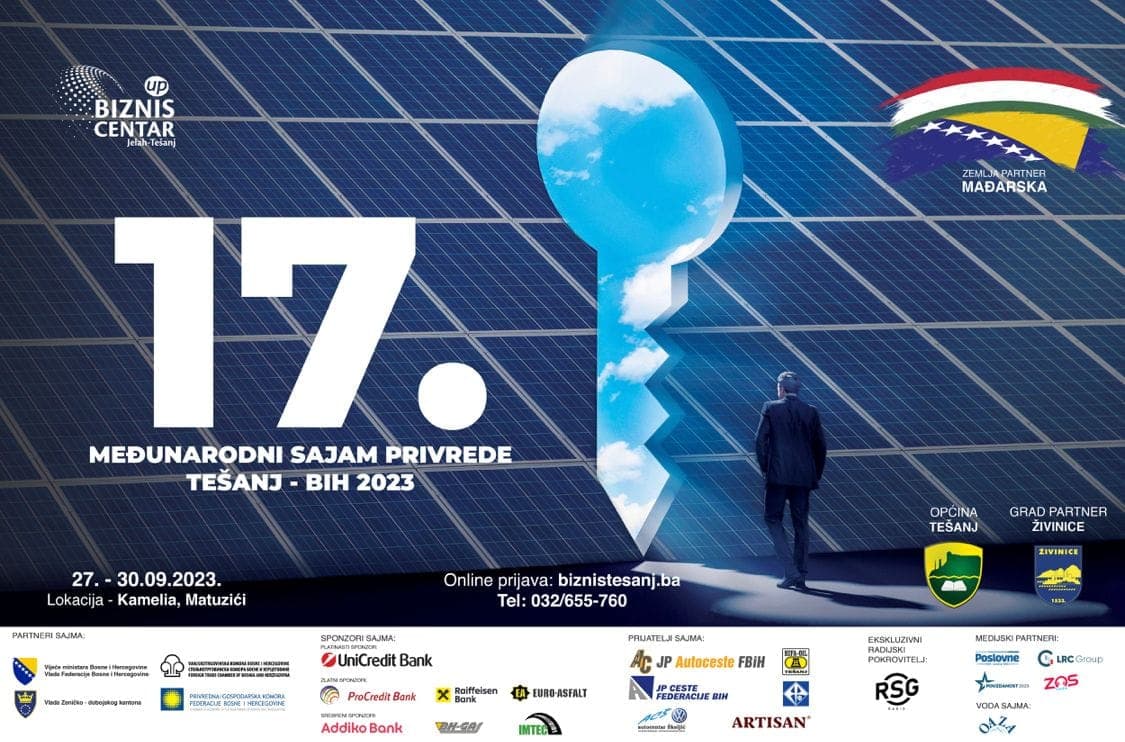 The Ministry of Economy of Zeničko-Dobojski Canton published a public call for the registration of exhibitors for the 17th International Trade Fair in Tešanj, scheduled from 27 to 30 September 2023, organised by the Business Centre Jelah-Tešanj Business Association. This year, the Ministry is fully covering participation costs for all companies from the canton that opt for collective presentation.