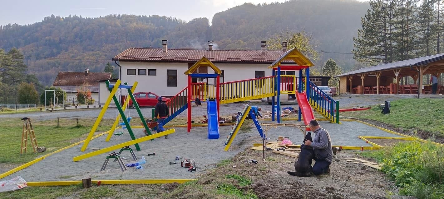 - Postavljen dječiji mobilijar na igralištu - tobogani, penjalice, klupe